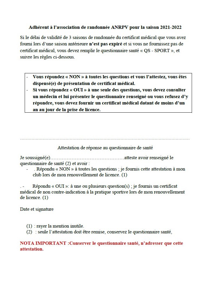 Note pour Questionnaire Santé